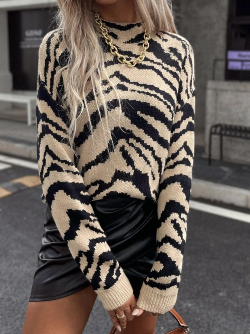 This casual knit sweater features a subtle leopard print design, blending timeless pattern appeal with modern comfort. Crafted from soft and breathable knit fabric, it offers a relaxed fit that’s perfect for everyday wear during the cooler months.