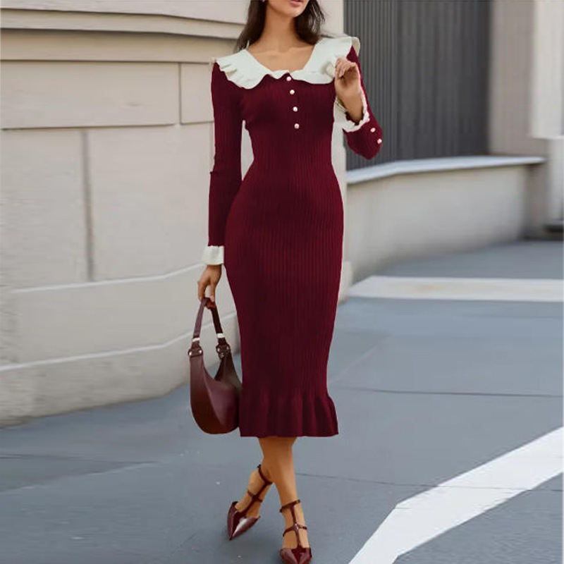 The unique color-blocked cuffs add a touch of modern flair, making this dress a standout piece in your wardrobe. Crafted from high-quality knit fabric, it provides a soft and luxurious feel against your skin.