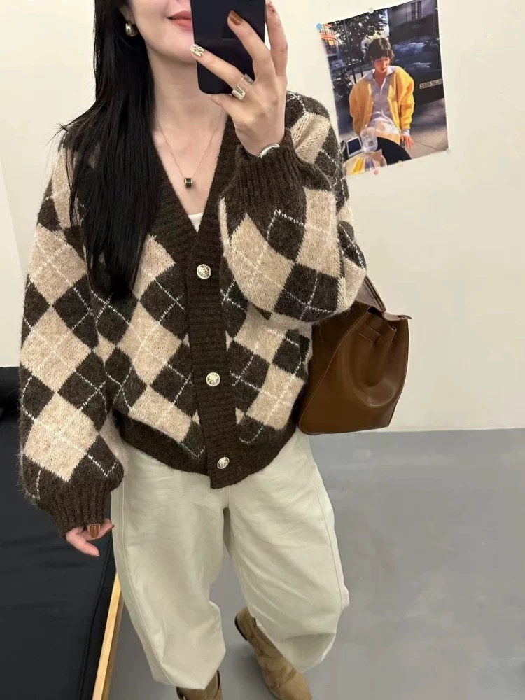 This sweater isn’t just a piece of clothing; it’s a statement. The retro diamond pattern adds a unique touch to your look, while the soft knit fabric keeps you feeling comfortable all day long. The V-neck design flatters your figure, and the versatile style makes it easy to create a variety of outfits. Whether you’re heading to the office, meeting friends for coffee, or simply relaxing at home, this sweater will be your go-to choice.