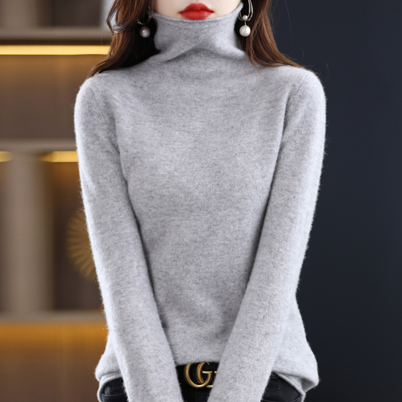 Attention to detail includes fine stitching, ribbed trims at the cuffs and hem for shape retention, and a structured high neckline that provides subtle warmth around the collarbone without bulk.